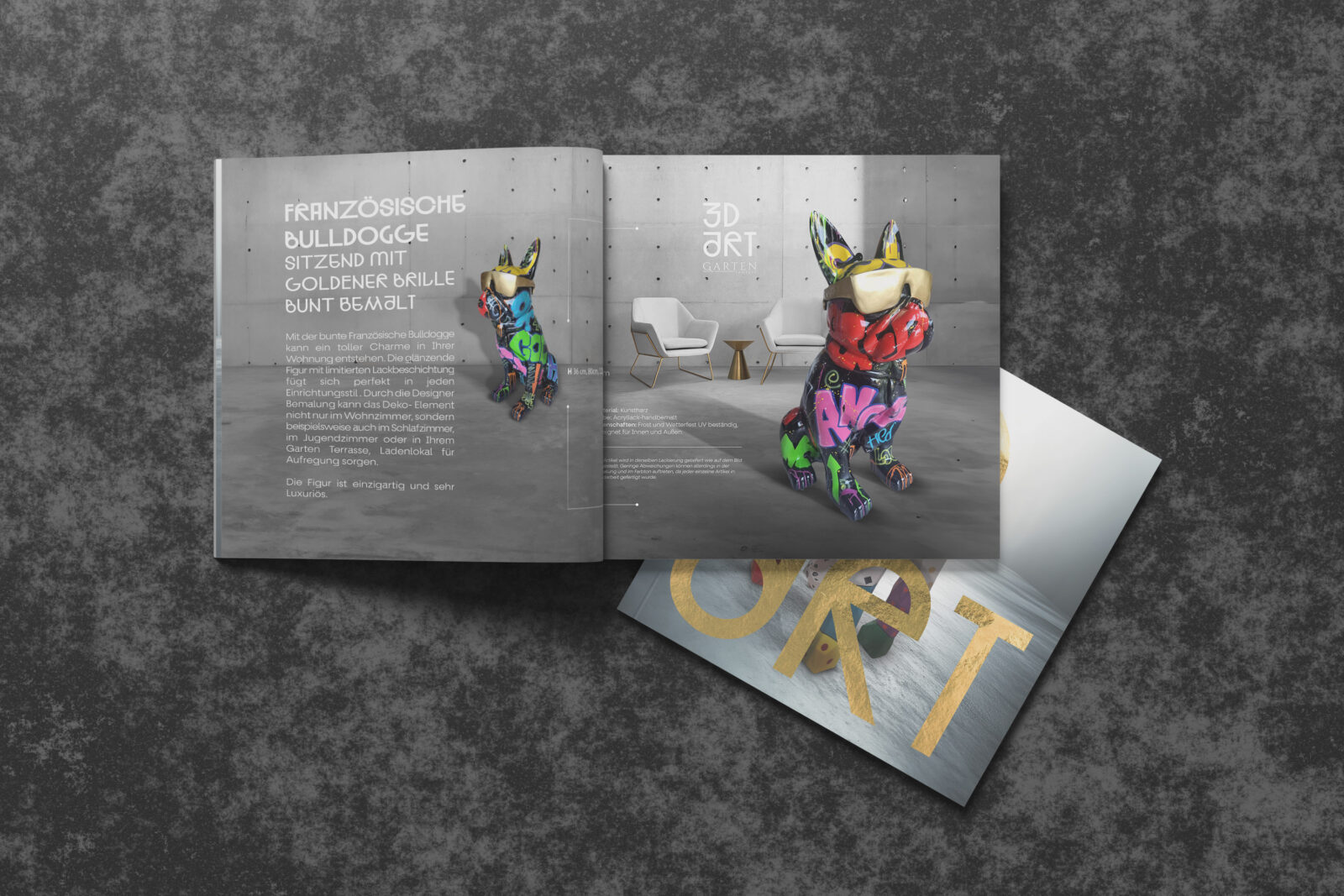 Dla niemieckiej marki Garten Fantasy, specjalizującej się w tworzeniu personalizowanych figur 3D, zaprojektowaliśmy katalog premium skierowany do wymagających klientów poszukujących unikalnych dekoracji do nowoczesnych, luksusowych wnętrz. Naszym celem było nie tylko zaprezentowanie oferty produktowej, ale także stworzenie przestrzeni pełnej inspiracji, w której każda figura zyskuje kontekst i wyjątkowy charakter.