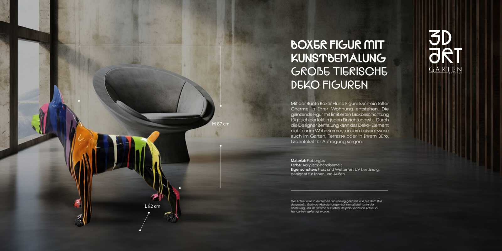 - Figury 3D w kontekście wnętrz – Każdej figurze towarzyszy wizualizacja przestrzeni, w której produkt może zostać wykorzystany. W ten sposób klient nie tylko widzi samą figurę, ale też otrzymuje gotową inspirację do własnej aranżacji. Każda przestrzeń jest starannie zaprojektowana tak, by podkreślać oryginalność, prestiż i wyjątkowość figury.